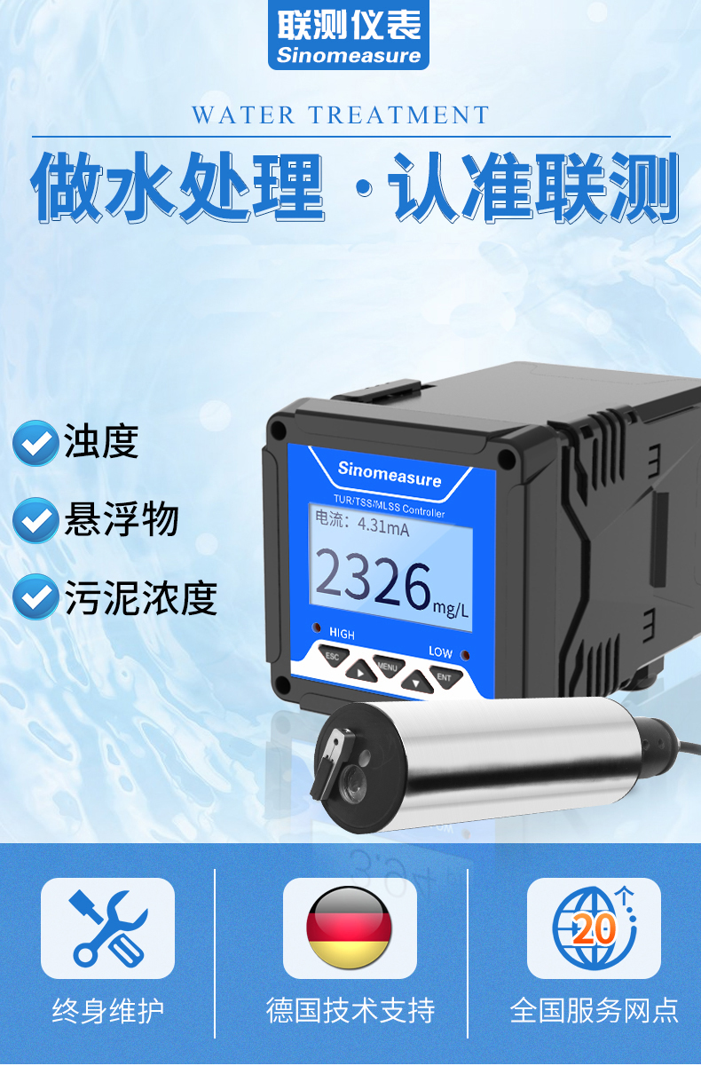 簡要描述:濁度/污泥濃度傳感器的原理基于組合紅外吸收散射光線法,應用 ISO7027 方法可以連續并精確地測定濁度或污泥濃度。
