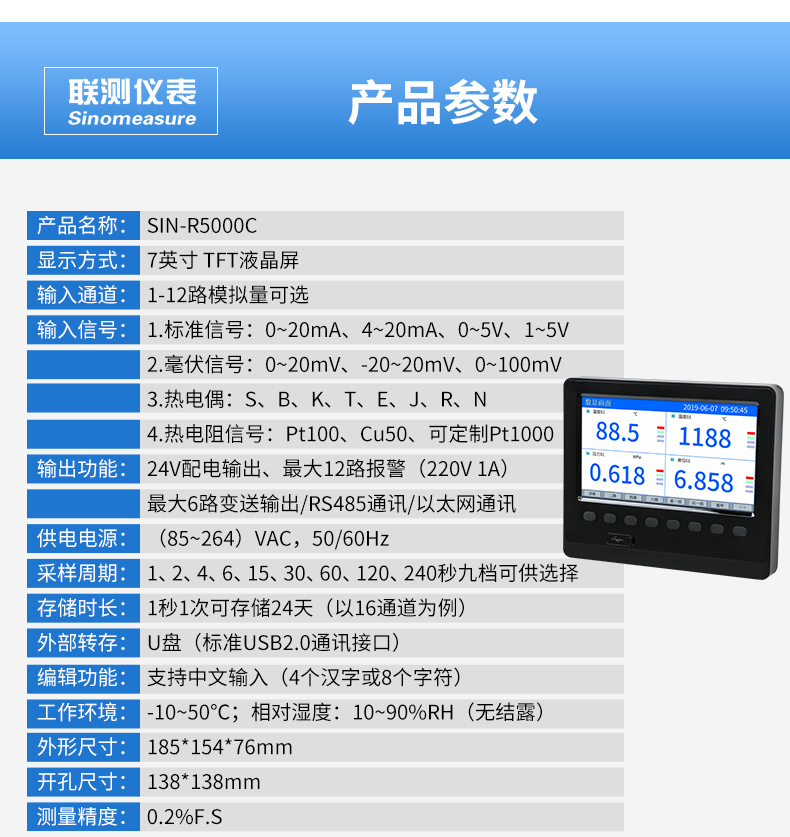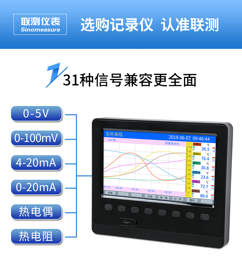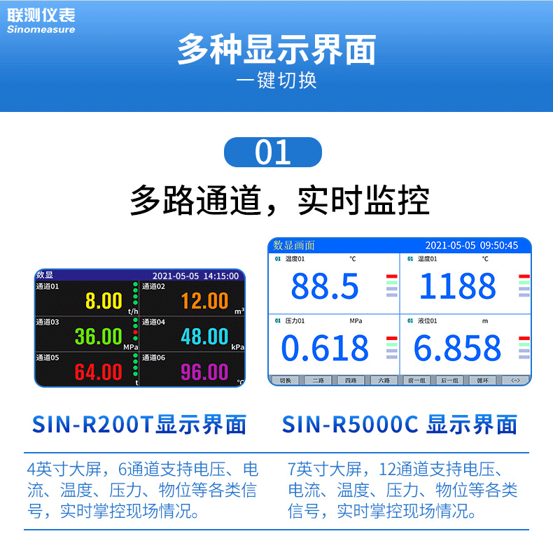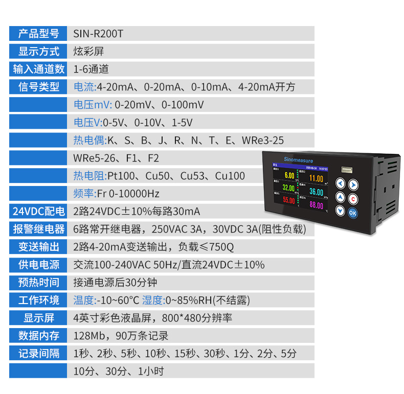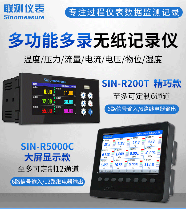 聯測_SIN-R200T_1~6路可選_無紙記錄儀_溫度_壓力_多種參數